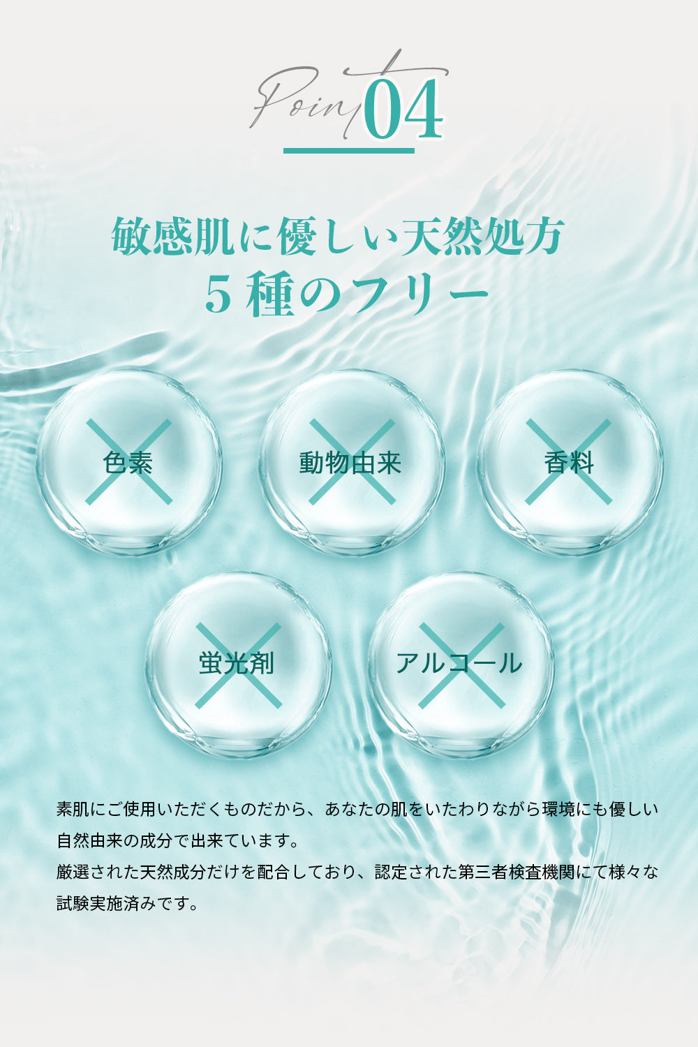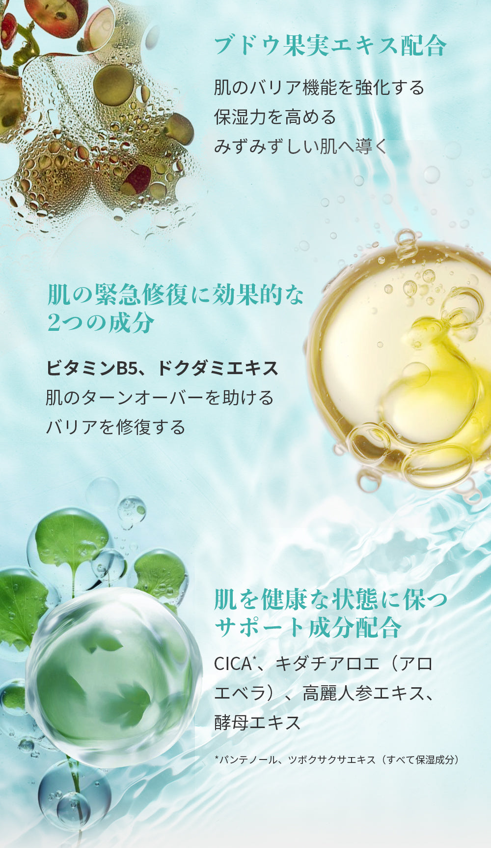 クレンジングウォーター:500ml × 1 洗顔料:300ml × 1 セラム:15ml × 1 トナー:150ml × 1 クリーム:50g |