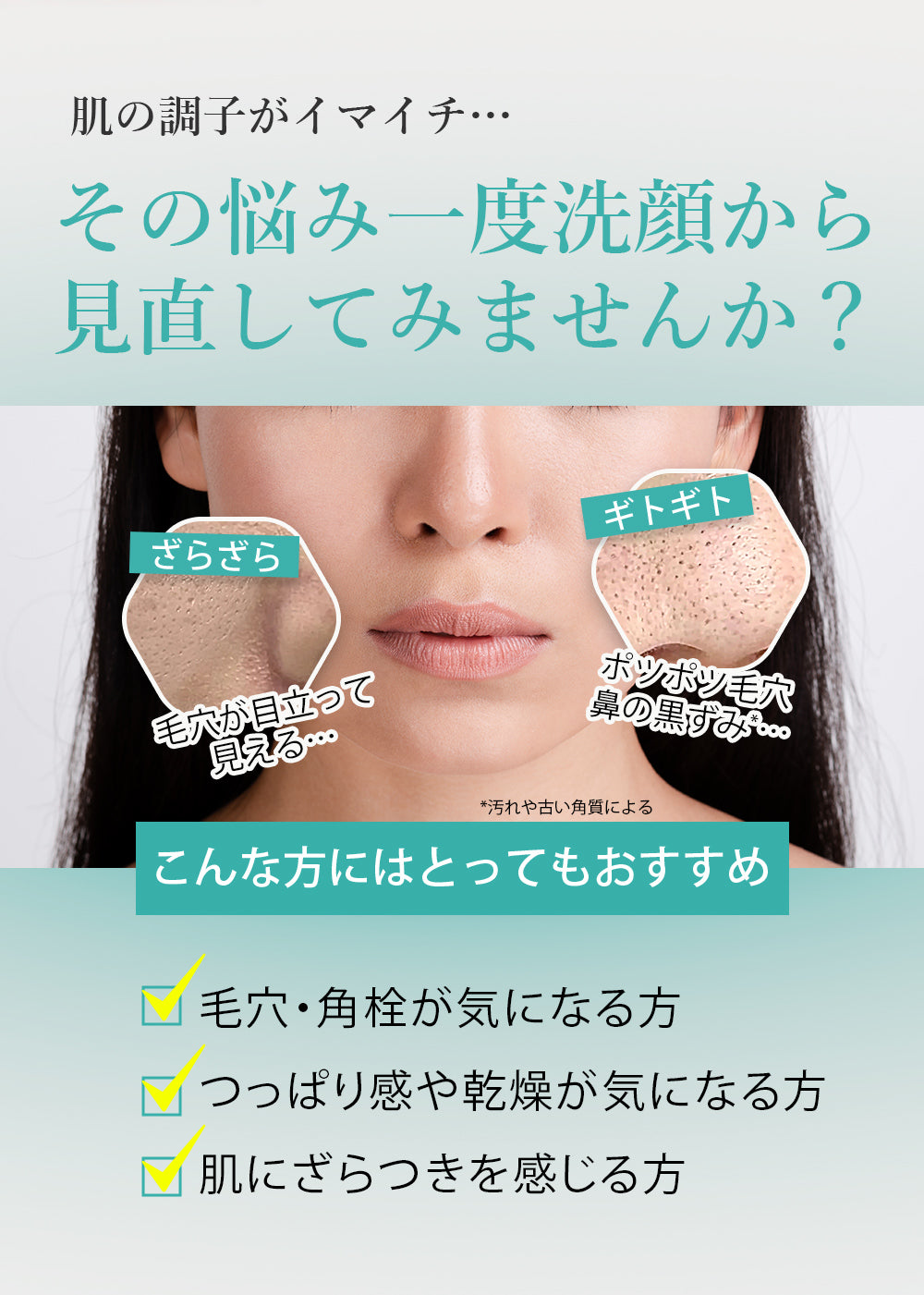 ・傷、はれもの、しっしん等異常があるときはご使用にならないでください。 |